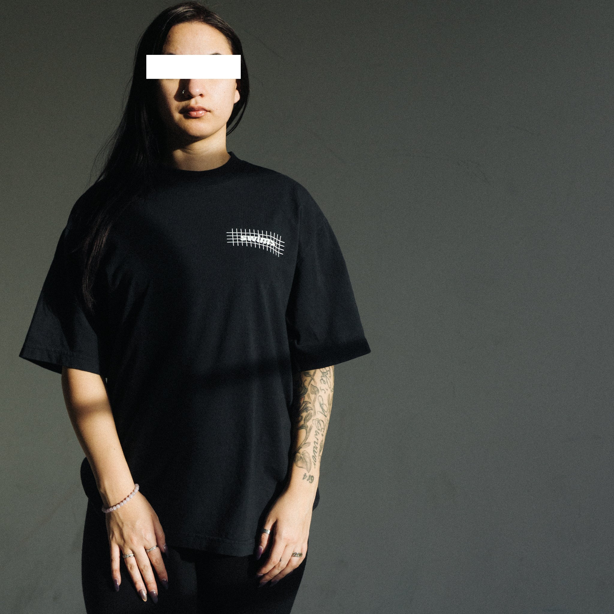Front features the classic swim> logo with a "gridline" twist
