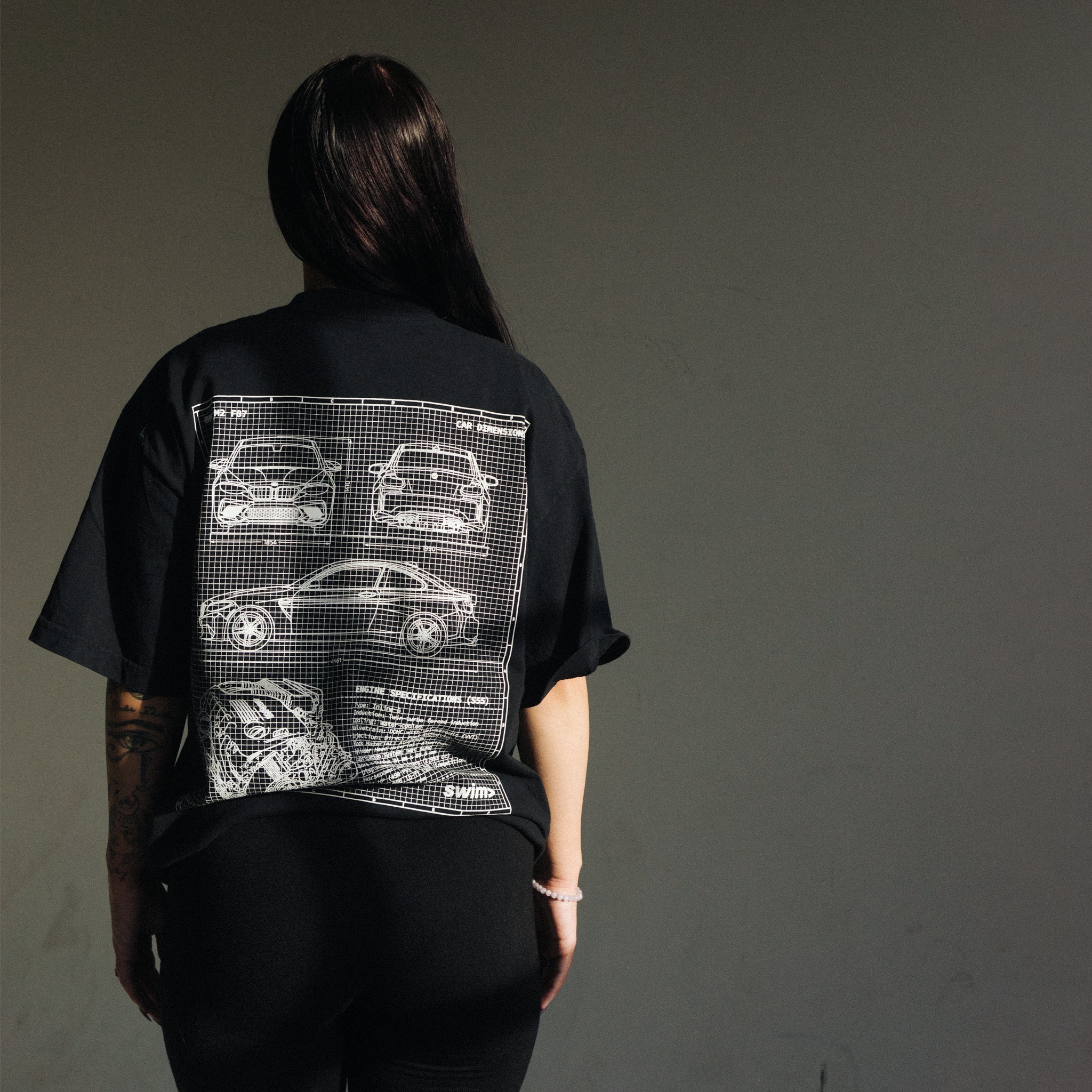 Back features a BMW M2 F87 blueprint screen-printed onto the back