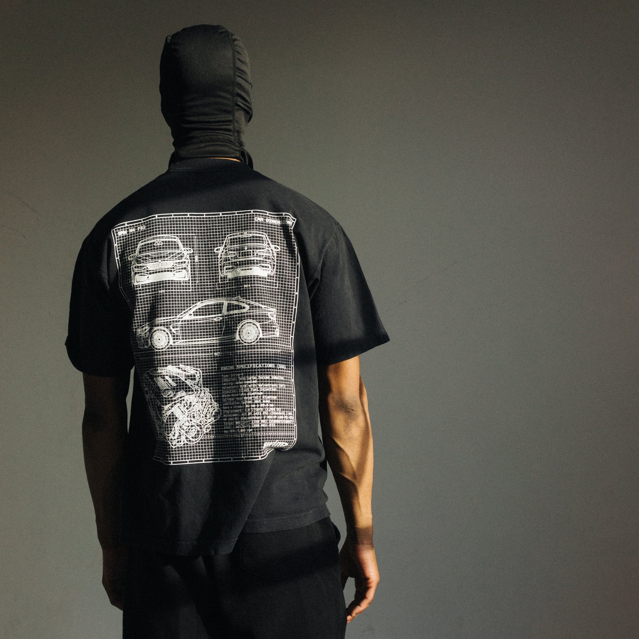 Back features a BMW M4 F82 blueprint screen-printed onto the back