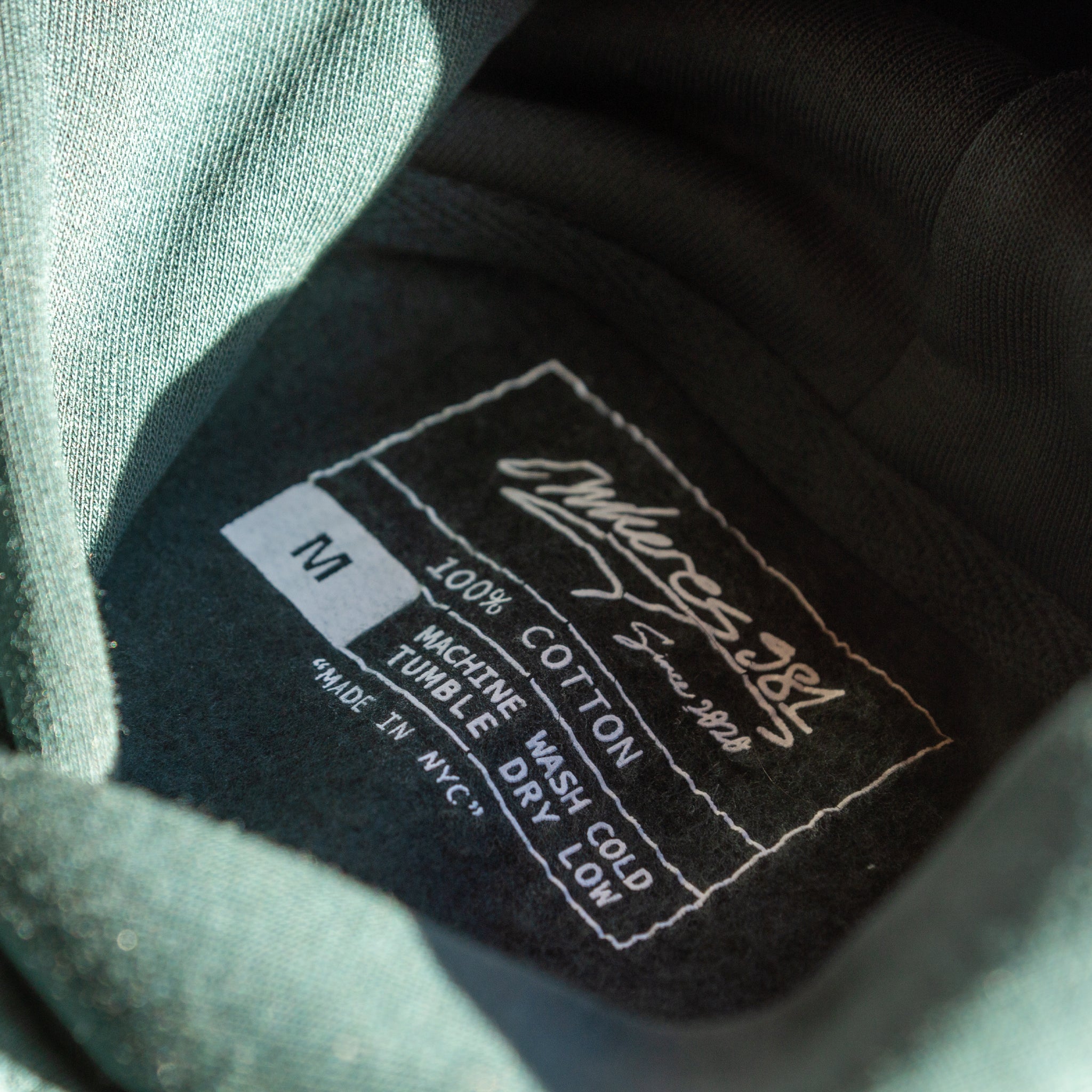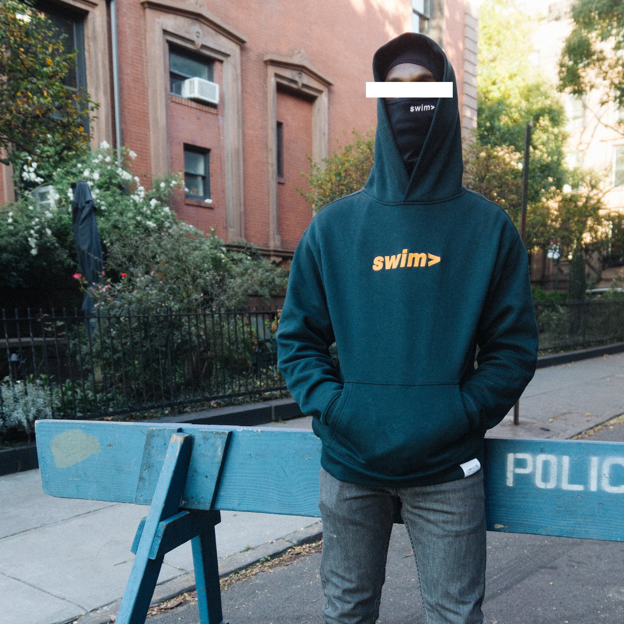 classic swim> logo (burnt orange) embroidered onto an ivy dyed hoodie